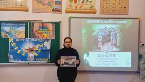 Під час заходів діти згадали важливий момент історичного минулого – День злуки ЗУНР та УНР в одну державу та нинішню боротьбу проти російської агресії, як віхи єдиного процесу боротьби за незалежність України.