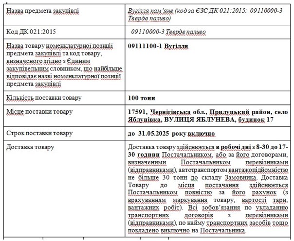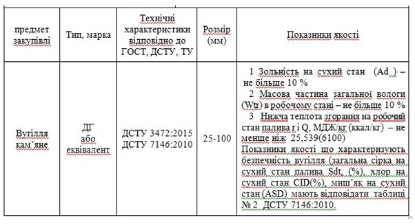Вугілля кам’яне (код за ЄЗС ДК 021:2015: 09110000-3 Тверде паливо)