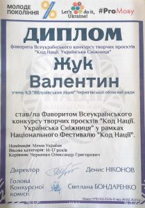 Жук Валентин став Фаворитом Всеукраїнського конкурсу номінація «Меми України» (керівник Черненко О. Г.)