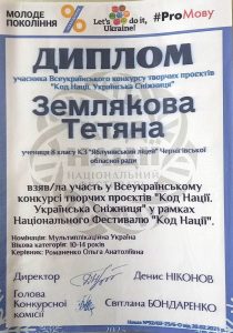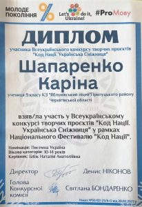 Шапаренко Каріна – номінація «Писемна Україна» (керівник Бібік Н. А.)