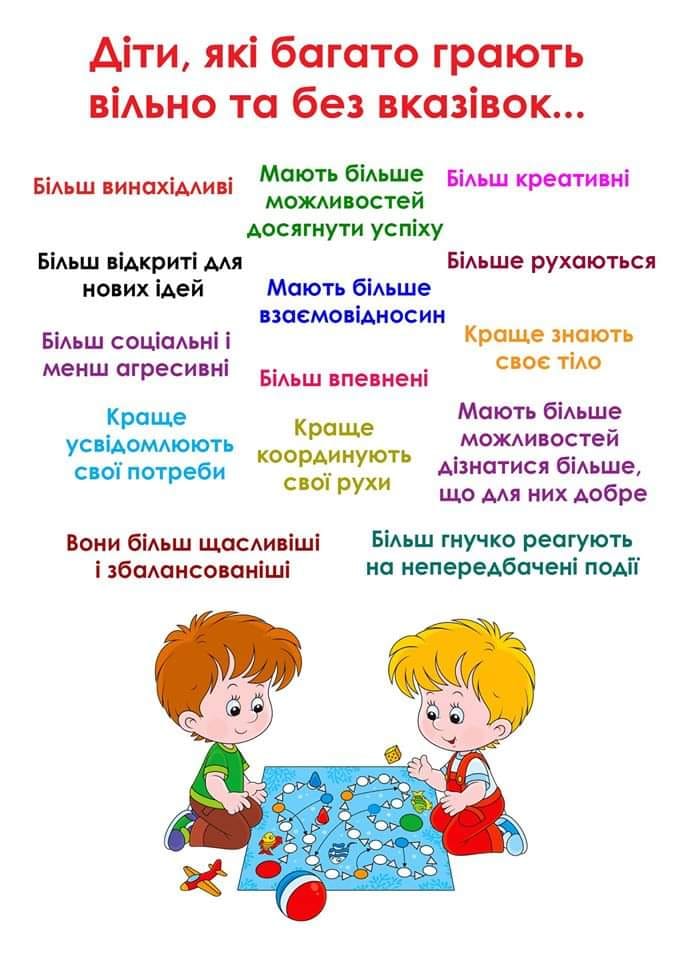 Значення вільної гри для гармонійного розвитку дитини